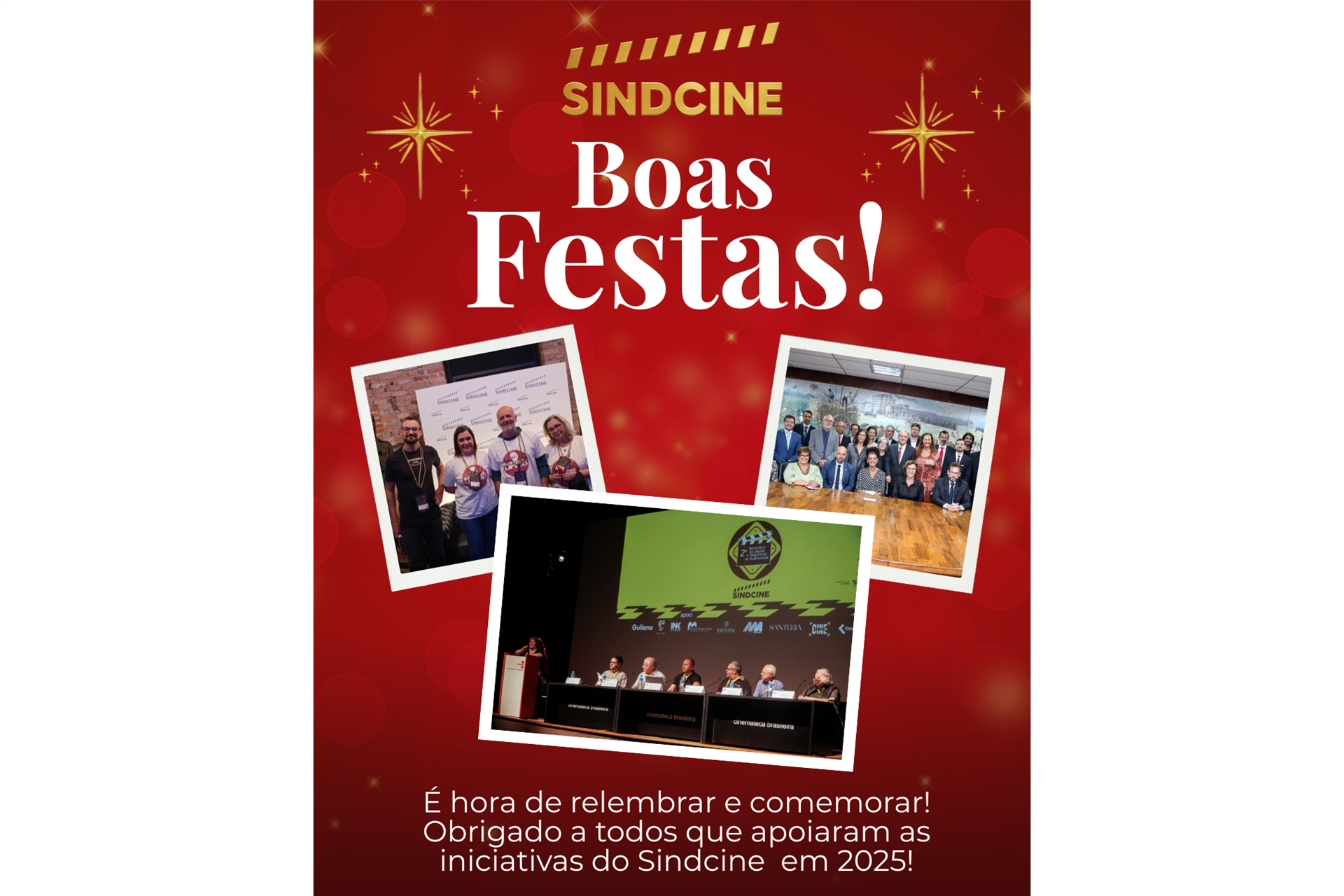 O Sindcine agradece a todos os colaboradores e parceiros que contribuíram para mais um ano de sucesso em defesa dos trabalhadores do audiovisual! Um ótimo Natal e um grande 2026 para todos nós!