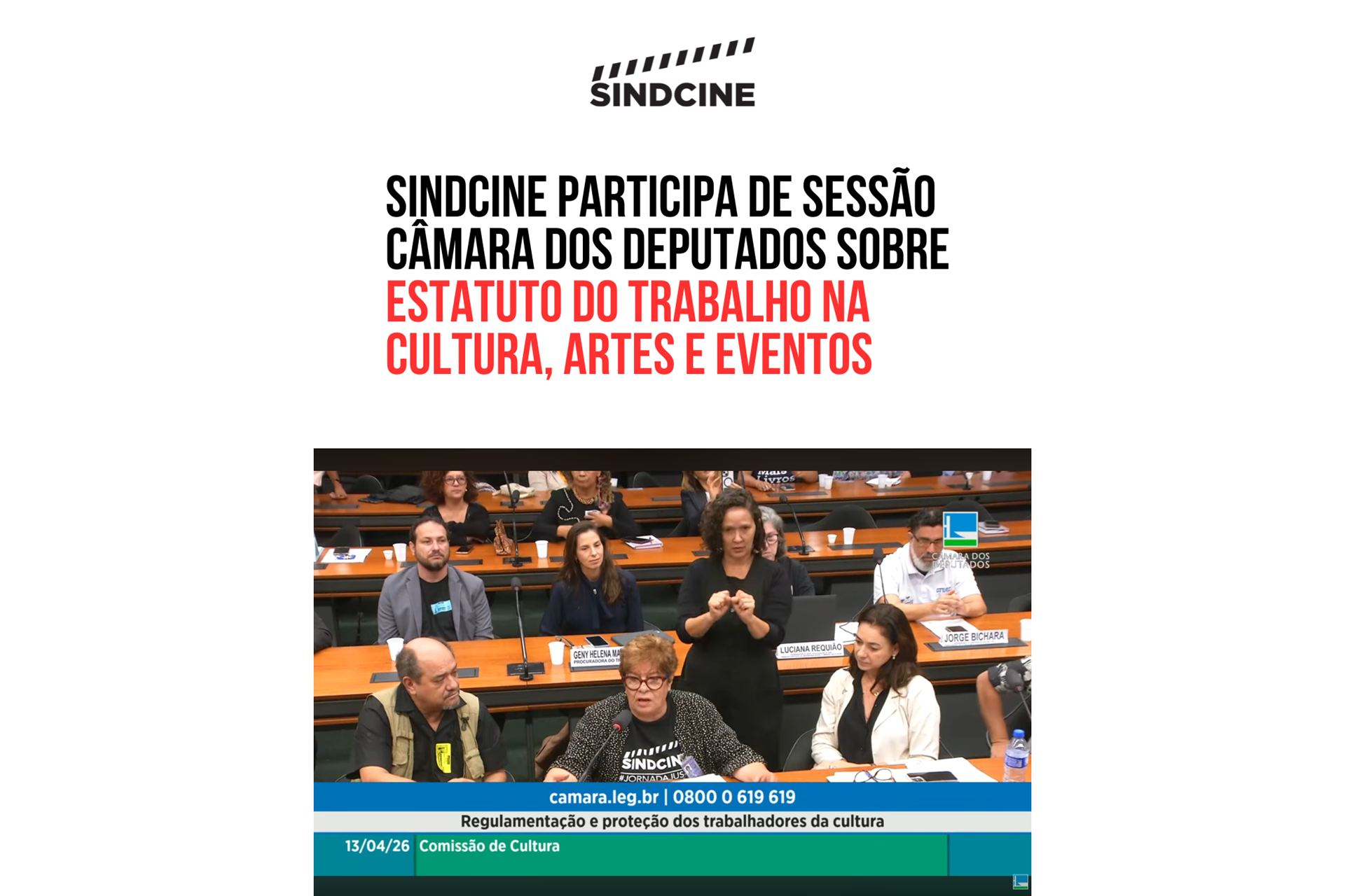 sessão da Comissão de Cultura da Câmara dos Deputados em Brasília, sobre "Regulamentação e Proteção dos Trabalhadores e Trabalhadoras da Cultura"