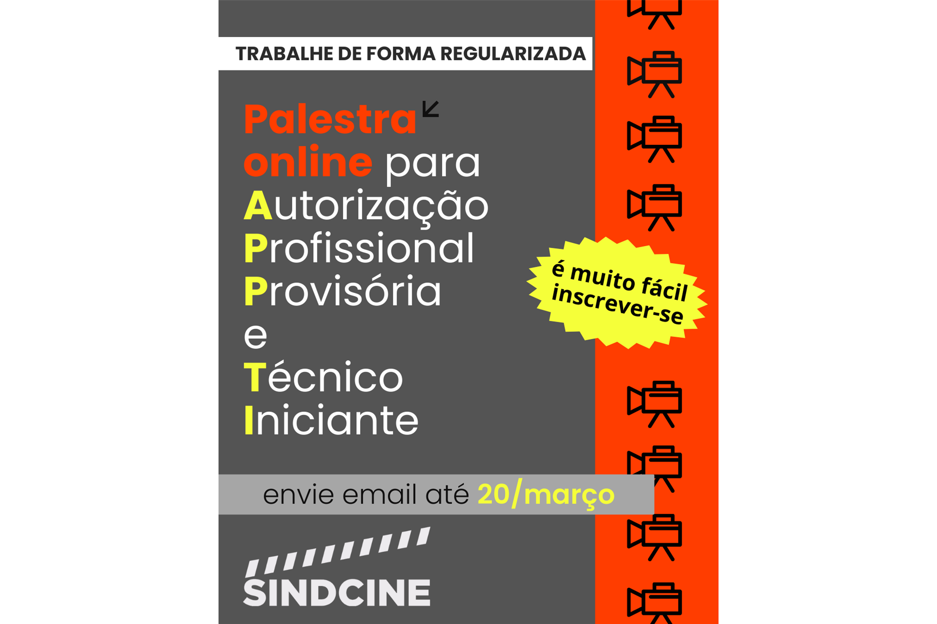 Sindcine inicia nova campanha de filiação que inclui Técnicos Iniciantes e Autorização Profissional Provisória